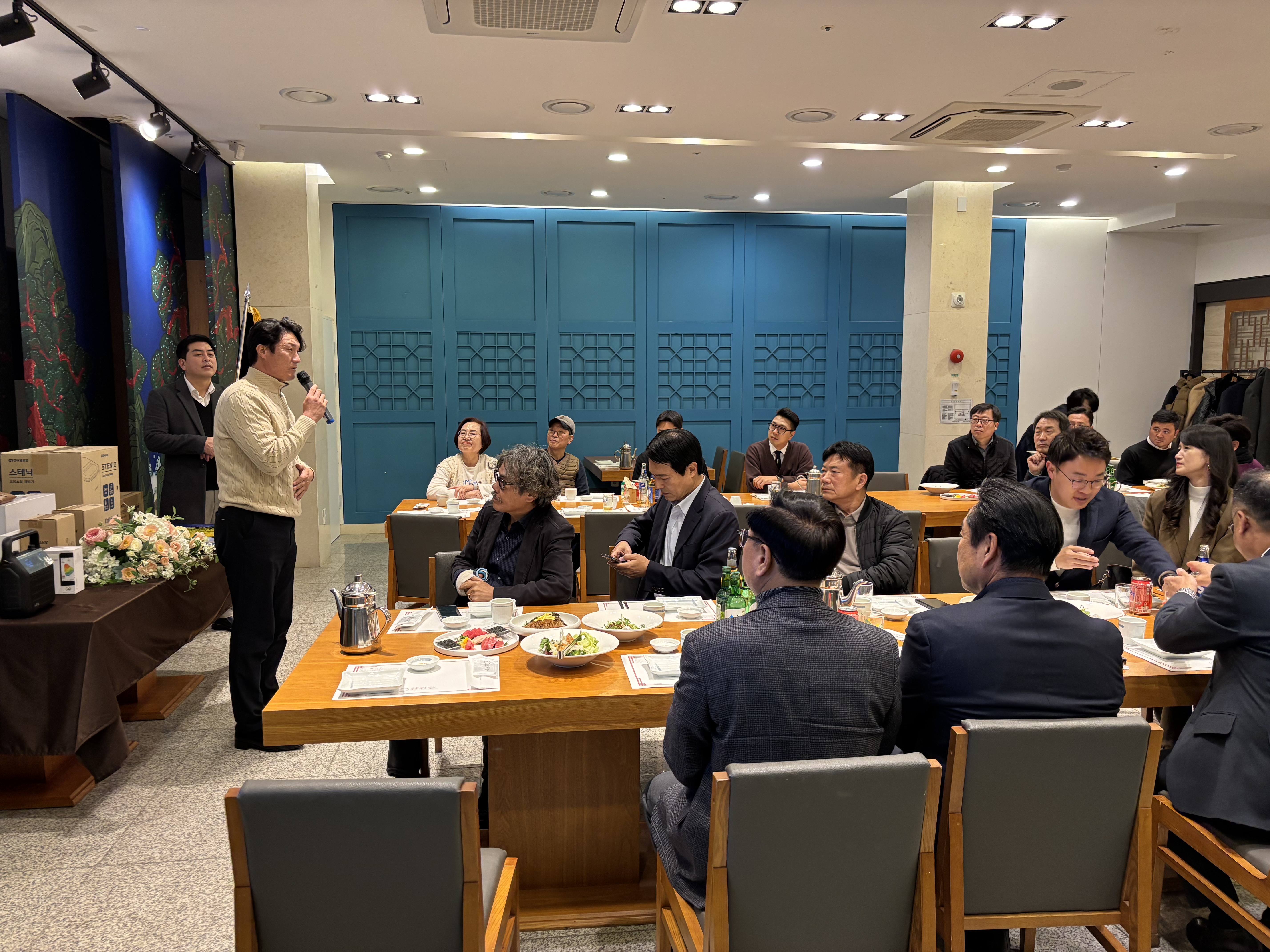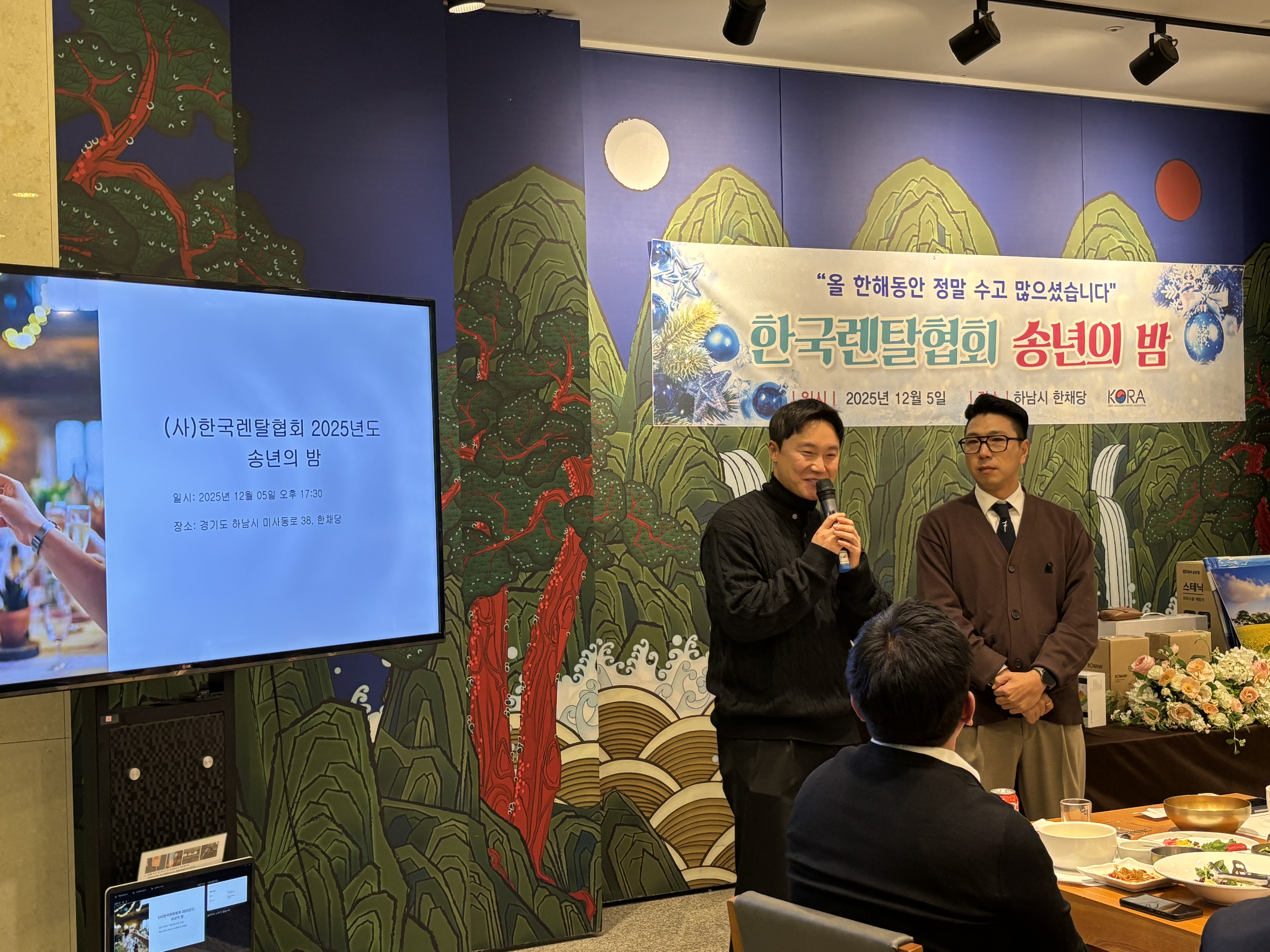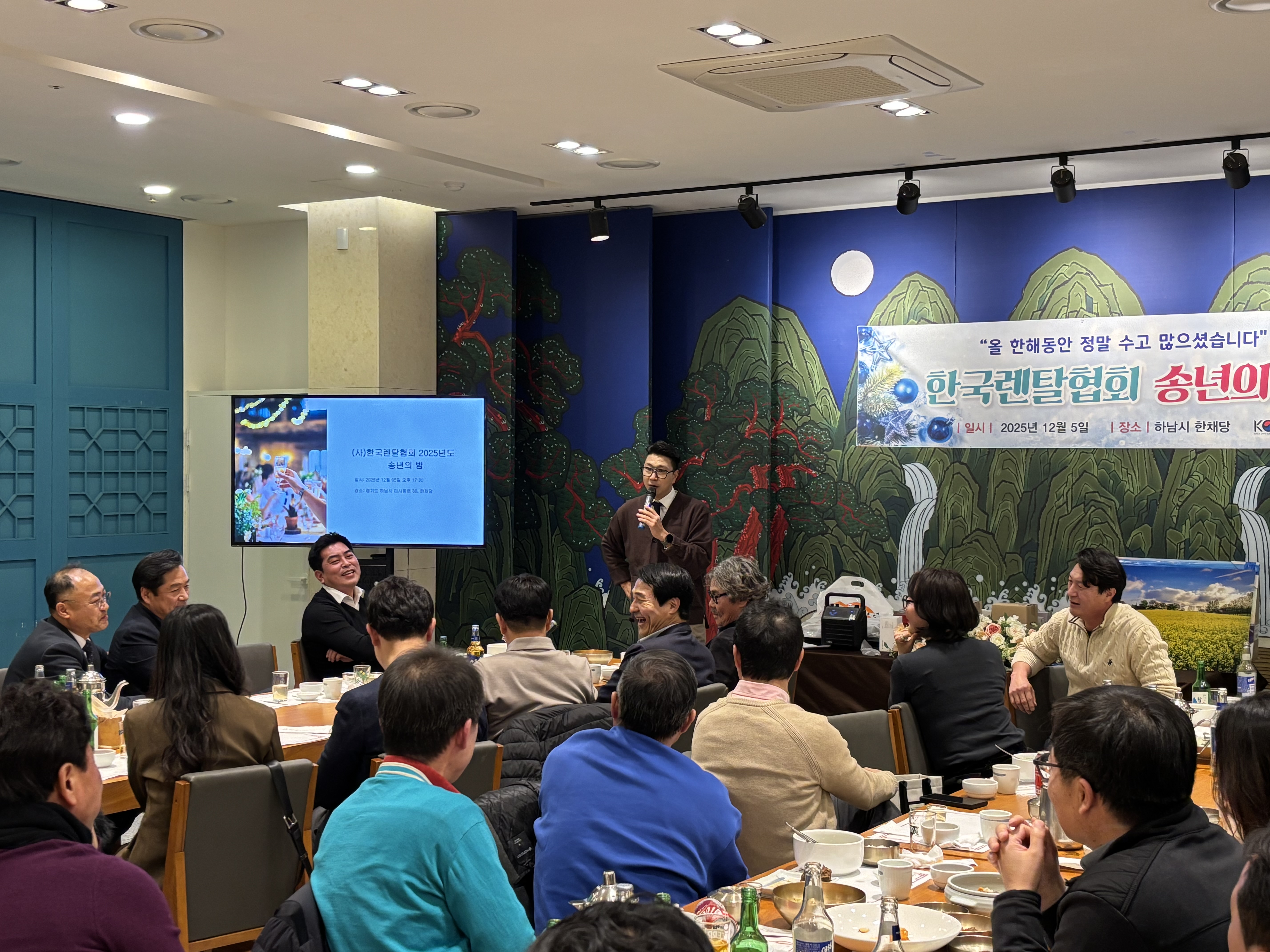 안녕하십니까. 사무국입니다. 송년회에 많은 분들께서 참석을 해주셔서 자리를 빛내주셔서 즐거운 행사가 되었습니다. 특히 더에스앤엘 이정태 대표님께서 협찬해 주신 레크레이션 강사가 진행하는 이벤트 경매 행사에 많은 회원분들께서 훌룡한 상품들을 기부해 주셔서 모두 즐거운 시간이 되었습니다.. 영상으로 보여드리지 못한점이 아쉬울 정도입니다. 참석해주시고 기부해주신 많은 회원분들께 다시 한번 감사인사드리며 올 한해 수고 많으셨습니다. 내년에 좋은 내용으로 다시 인사드리도록 하겠습니다. 감사합니다.